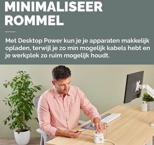 Stekkerblok Fellowes Power Cube F 3 voudig 1xUSB A 2xUSB C 2 meter wit