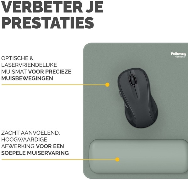 Bescherm je bureau en verbeter de prestaties van je muis met deze muismat die geschikt is voor optische en lasermuizen. Gemaakt van 69% gerecycled materiaal en 100% recyclebaar met het terugnameprogramma van Fellowes. Gemaakt om lang mee te gaan met 5 jaar beperkte garantie.