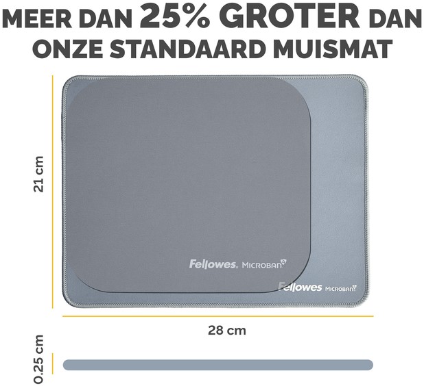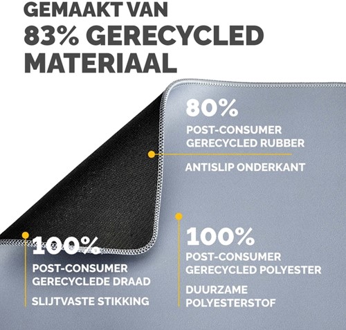 Meer dan 25% groter dan onze standaard muismatten voor meer bewegingsvrijheid, waardoor kleine herhaalde bewegingen die pijn in de pols kunnen veroorzaken, worden verminderd. Bescherm uw bureaublad en verbeter de prestaties van uw muis met deze muismatten die geschikt zijn voor optische en lasermuizen. De ingebouwde Microban®-bescherming helpt de groei van bacteriën te voorkomen en werkt 24/7 voor een extra bescherming van het product. Gemaakt van 83% gerecycled materiaal. De antislipbasis houdt de muismat de hele dag op zijn plaats. Duurzame platte stiksels voorkomen rafelen. Gemaakt om lang mee te gaan, met 5 jaar garantie.