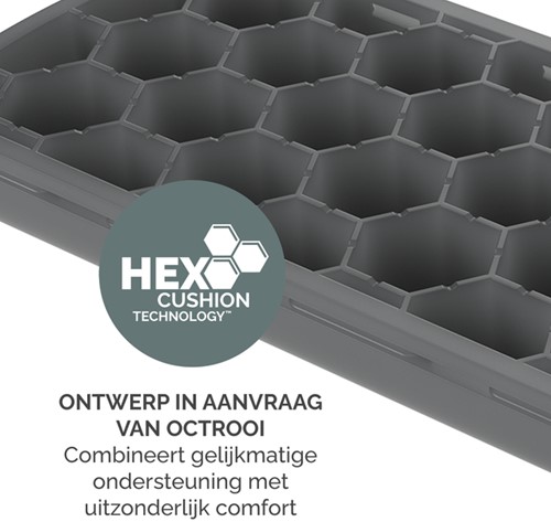 • De HEX Cushion Technology™, waarvoor patent is aangevraagd, zorgt voor gelijkmatige ondersteuning en comfort tijdens het typen.