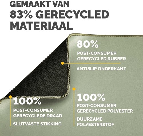 Meer dan 25% groter dan onze standaard muismatten voor meer bewegingsvrijheid, waardoor kleine herhaalde bewegingen die pijn in de pols kunnen veroorzaken, worden verminderd. Bescherm uw bureaublad en verbeter de prestaties van uw muis met deze muismatten die geschikt zijn voor optische en lasermuizen. De ingebouwde Microban®-bescherming helpt de groei van bacteriën te voorkomen en werkt 24/7 voor een extra bescherming van het product. Gemaakt van 83% gerecycled materiaal. De antislipbasis houdt de muismat de hele dag op zijn plaats. Duurzame platte stiksels voorkomen rafelen. Gemaakt om lang mee te gaan, met 5 jaar garantie.