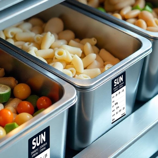 Gekleurde voedsel-dagetiketten zijn essentieel voor efficiënt voorraadbeheer in de horeca. Ze maken het mogelijk om de bereidings- of openingsdatum van voedsel nauwkeurig te volgen. Dankzij een kleurcode per dag identificeert men in één oogopslag de producten die met voorrang gebruikt moeten worden. Dit helpt voedselverspilling te beperken en zorgt voor een optimaal voedselgebruik. Met deze labels voldoet men aan de HACCP-normen en vergemakkelijkt men de controle van de houdbaarheidsdatum. Dankzij de afneembare lijm zijn ze eenvoudig aan te brengen en te verwijderen. Ze kunnen worden gebruikt op alle soorten verpakkingen. In de keuken verbeteren ze de communicatie tussen teams door verwarring over de versheid van de producten te voorkomen. Het gebruik van daglabels betekent dagelijks tijd besparen en tegelijkertijd servicekwaliteit garanderen. Door te investeren in dit efficiënte etiketteringssysteem optimaliseren horeca-eigenaren zowel hun organisatie als hun winstgevendheid.