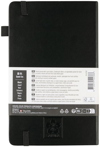 Het Sakura harde kaft notitieboek is een journal van hoge kwaliteit. Het notitieboek heeft 80 vellen FSC-gecertificeerd papier, licht crèmewit van kleur voor optimale leesbaarheid. De klassieke regelafstand (7 mm) zorgt voor comfortabel schrijven met voldoende ruimte om je handschrift gemakkelijk opnieuw te lezen. Het stevige 140 g/m² zuurvrije papier voor het maken van aantekeningen en het bijhouden van gegevens is vrijwel geschikt voor elk type peninkt, waardoor je schrijfwerk niet doordrukt. Het Sakura notitieboek heeft een zwartkleurige harde kaft met afgeronde hoeken, een elastische sluitband, een leeslint en een uitbreidbare pocket aan de achterkant voor het verzamelen van losse aantekeningen. Afmeting: Large - 21 x 14 cm