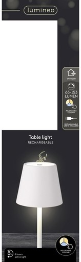 Tafellamp Lumineo led oplaadbaar steady buiten wit