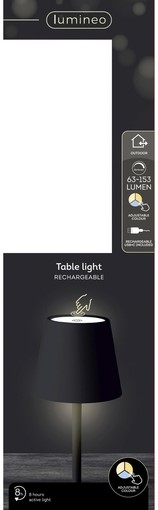 Tafellamp Lumineo led oplaadbaar steady buiten zwart