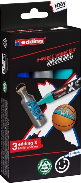 Hé, trendsetter! Klaar om je creatieve spel te verbeteren? Maak kennis met de edding X Multi Marker - de ultieme sidekick voor tieners die durven te dromen in kleur. Stel je een marker voor die delig is van tovenaar tot rockster. Dat is onze beitelpunt! Hij danst met gemak over oppervlakken zoals canvas, sneakers en T-shirts. Dikke streken, dunne lijnen, zigzaggende lijnen - het is aan jou. En die kleuren? Ze zijn als een regenboogexplosie op een eenhoornfeestje. Maar wacht, er is meer! Onze inkt is als een trouwe BFF. Het zal je niet vergeten, vervagen of afbladderen. Dus ga je gang, customize je kicks, zet krabbels op je telefoonhoesje en verander dat effen T-shirt in draagbare kunst. Jij bent de kunstenaar en deze acrylverfstift is jouw toverstaf. En raad eens? We zijn nog milieuvriendelijk ook! De dop en houder zijn gerecyclede champs en onze inkt is 100% veganistisch. Dus druk jezelf vrijmoedig uit in de wetenschap dat je de planeet één streek per keer redt. Met liefde en een vleugje rebelse geest gemaakt in Duitsland. Maak je klaar om te creëren, inspireren en slay.