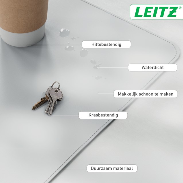 • De Leitz Grote Bureau-onderlegger is een gemakkelijk schoon te maken, waterdichte bureau-onderlegger om je bureau netjes te houden.