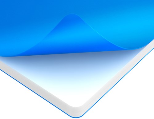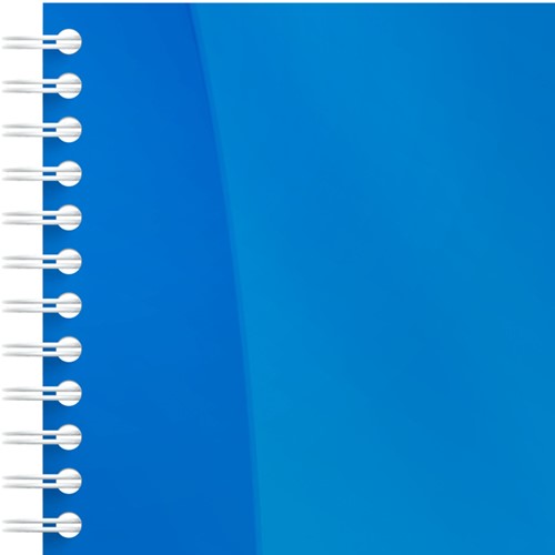 • Een spiraalblok met flexibele, waterafstotende kunststof kaft in vrolijke kleuren.