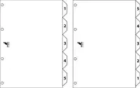 • De witte afgeronde tabs zijn tweezijdig zwart bedrukt met cijfers.