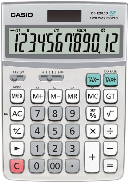 • Functies: euro omrekening, percentageberekening, belasting berekenen, groot totaal geheugen, decimaal selectie (0,1,2,3,4,ADD2), dubbelnultoets, verdeling in duizenden, onafhankelijk geheugen en afrondselectie.