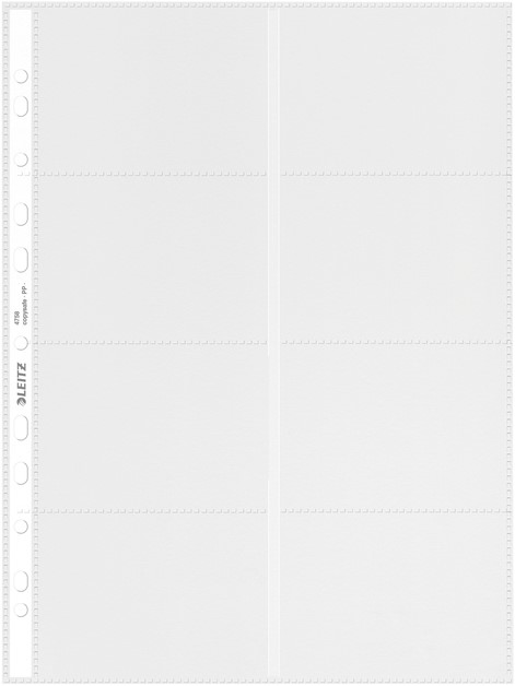 • Showtas met 8 verdelingen voor visitekaartjes. Door meerdere perforatiegaten zijn visitekaartjes handig op te bergen in ordners en ringbanden.