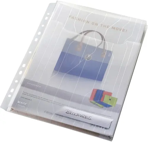 • Flexibele zichtmap en showtas door unieke uitvouwbare perforatiestrip. Geschikt voor grote documenten en catalogi door 20 mm uitzetbare vouw aan onderzijde.