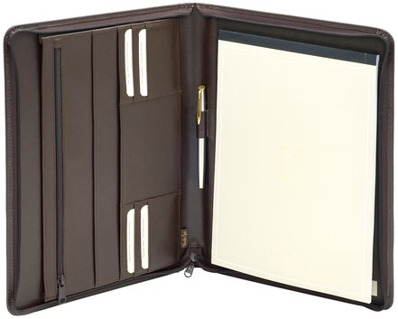 Schrijfmap van der Spek A4 + rits leer met nerf bruin