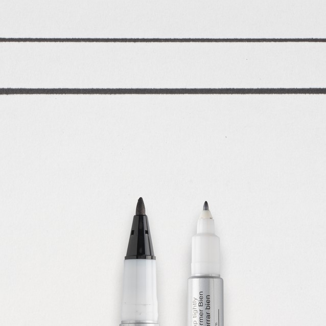 • Beide uiteinden van de Sakura Marker IDenti Pen heeft een penpunt: een dunne glasvezelpunt (0,4mm) voor gedetailleerd werk en een brede kunststofpunt (1,0mm) voor het reguliere schrijfwerk.