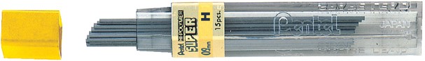 Super hi-polymer stiften 0,9 mm. Hardheid: H. Materiaal is een mengsel van kunsthars, grafiet en carbon. Zeer dichte structuur zorgt voor een diepzwarte lijn en exacte lijndikte. Soepel en breukvast. Lengte 60 mm. Dit product bestaat voor 98% uit gerecycled materiaal.