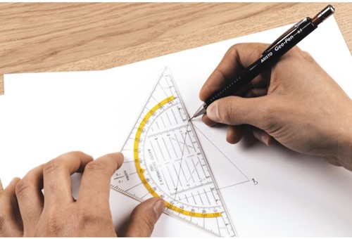 Geodriehoek Aristo 1552 160mm transparant met gele rand