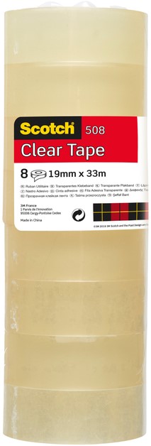• Scotch® 508 Transparent Tape is een economische tape voor algemeen gebruik met een lange levensduur.