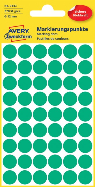 Etiket Avery 3143 rond 12mm groen 270 stuks