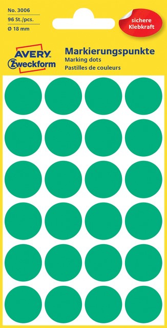 Etiket Avery 3006 rond 18mm groen 96 stuks