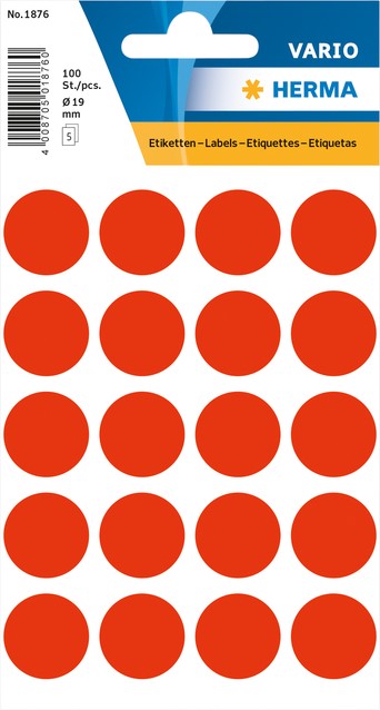 Etiket HERMA 1876 rond 19mm fluor rood 100 stuks
