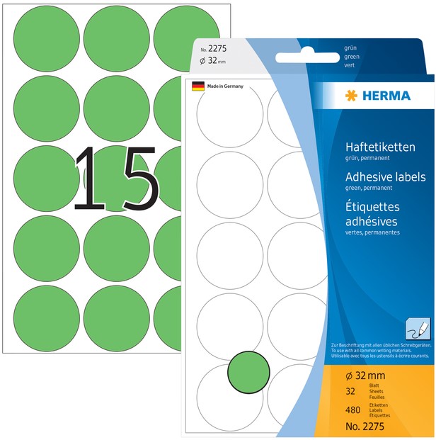Etiket HERMA 2275 rond 32mm groen 480 stuks