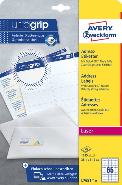 Etiket Avery L7651-25 38.1x21.2mm wit 1625 stuks