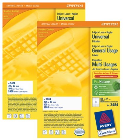Etiket Avery Zweckform 3474-200 70x37mm wit 4800stuks