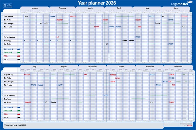 Het gebruik van een project jaarplanner is een praktische en visueel aantrekkelijke manier om je planning, evenementen en taken voor het jaar te organiseren. Hang op een zichtbare plek: Zoek een prominente plek in je huis of kantoor. Gebruik verschillende kleuren markers of stiften om belangrijke data zoals afspraken en deadlines te markeren. Algemene feestdagen zijn voorbedrukt. Gelamineerde Engelstalige projectplanner 60x90cm. De laminering beschermt het karton tegen slijtage en maakt de planner duurzamer en zorgt voor een langere levensduur. Op het gladde, beschrijfbare oppervlak van het gelamineerde karton kun je eenvoudig schrijven en wissen bij gebruik van droog uitwisbare markers. Markeringen kunnen eenvoudig worden gewist met een vochtige doek of een gum. Jaarplanner met de maanden aan de bovenkant en de projecten langs de zijkant. Twee blokken van 6 maanden, het ene boven het andere. Voor maximaal 30 projecten, personeelsleden, evenementen of besprekingen. Weekends zijn in een andere kleur gemarkeerd. Extra ruimte voor aantekeningen aan de rechterkant van de planner. Weeknummers zijn in het design opgenomen. Afmeting raster ongeveer: H7 x W4.2 mm. Deze jaarplanner is gemaakt van materiaal uit goed beheerde. FSC®-gecertificeerde bossen en andere gecontroleerde bronnen (FSC C158462). Dit product wordt geleverd in een kartonnen en plasticvrije verpakking.