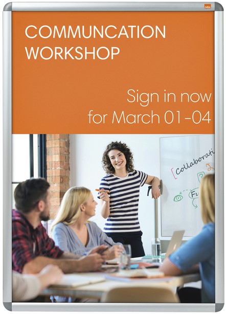 • Wandgemonteerd poster frame voor het veilig ophangen van posters, borden en informatie. De handige aluminium clicklijst zorgt voor een professionele afwerking en maakt het mogelijk snel en eenvoudig de inhoud te wisselen.
