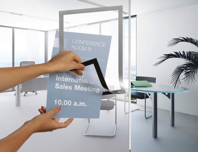 • Duraframe is een zelfklevend kader, bestaande uit twee transparante folies die samen worden gehouden door de magnetische rand.