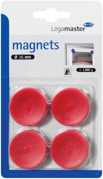 Magneet Legamaster 30mm 850gr rood 4 stuks