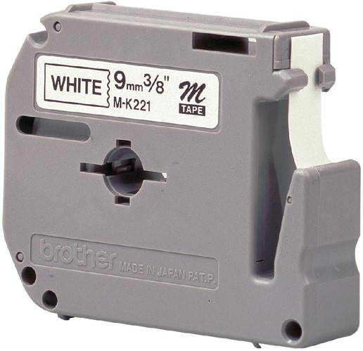 Labeltape Brother P-touch M-K221 ongelamineerd 9mm zwart op wit