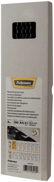 Bindrug Fellowes 6mm 21rings A4 zwart 100 stuks