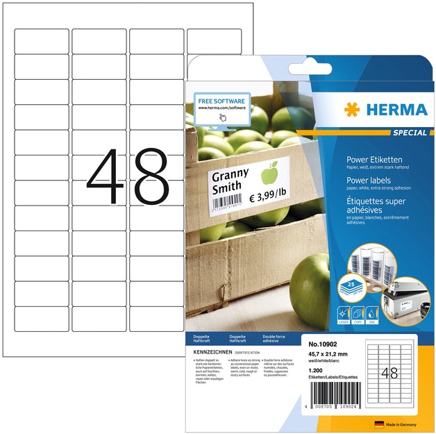 Etiket HERMA Power 10902 45.7x21.2mm wit 1200 stuks