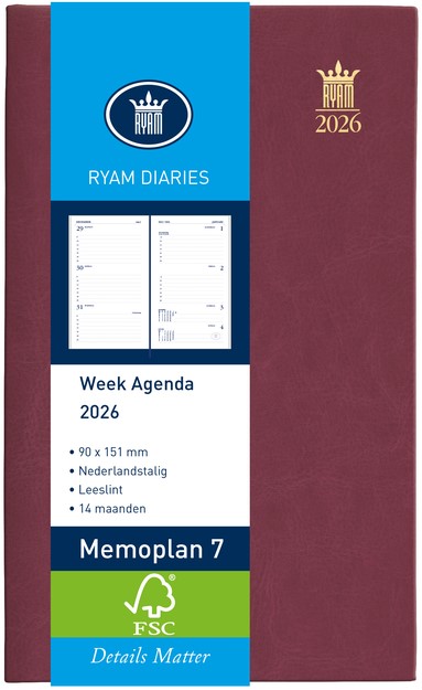Agenda 2026 Ryam Memoplan 7 Suprema 7dagen/2pagina's bordeaux