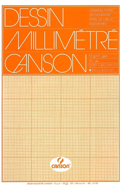 Millimeterpapier Canson bruingeel bedrukt 50vel 72gr A3 wit