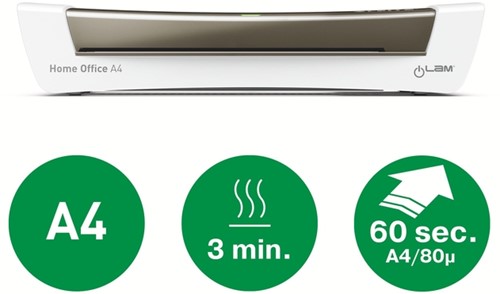 • Een A4 blad van 80 micron lamineren duurt ongeveer 60 seconden.