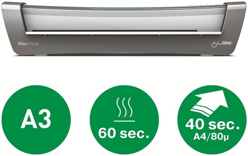 • Lamineermachine geschikt voor intensief gebruik op kantoor.