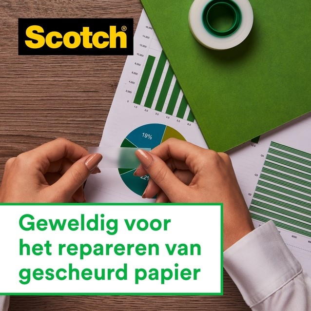 • Scotch® Magic™ Tape ziet er mat uit op de rol, maar wordt doorzichtig na het gebruik op de meeste papiersoorten.