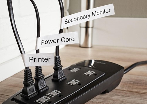 • Indien u de tapes op een gebogen oppervlak wilt gebruiken, zoals stroomkabels, dan moet u de Dymo D1 flexibele nylon tape gebruiken.
