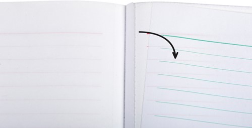 • Het 1ste blad is micro geperforeerd en is gemakkelijk uit te scheuren, het 2de blad blijft in het boekje.