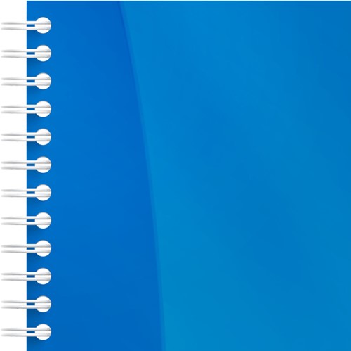 • De witte geplastificeerde dubbelspiraal binding zorgt ervoor dat het notebook plat blijft liggen of 360° omgeklapt kan worden.