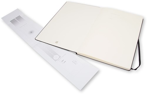 • Ieder Moleskine boek is genaaid gebrocheerd, heeft afgeronde hoeken, zuurvrij papier, een bladwijzer (lintje), een elastieken sluiting en een flexibel binnencompartiment waarin de geschiedenis van Moleskine zit opgeborgen.