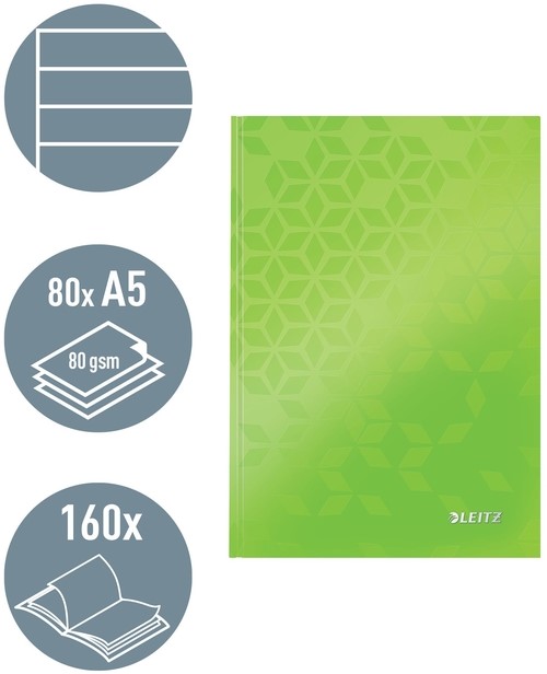 Notitieboek Leitz WOW A5 160blz 90gr lijn groen