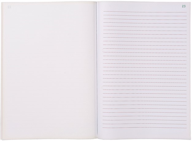 • De linkerpagina is blanco, de rechterpagina gelinieerd.