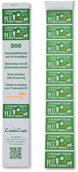 • Consumptiebon met UV beveiliging en tekst in 4 talen.