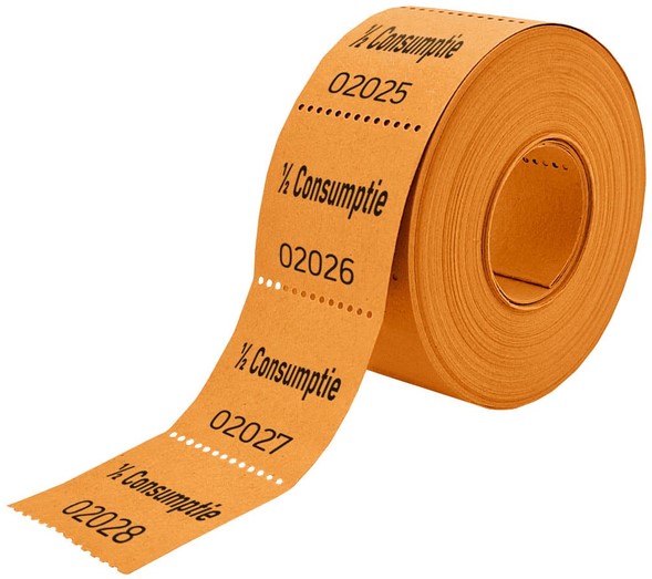• Duidelijke oranje consumptiebonnen van 30x30mm op een rol van 500 bonnen.