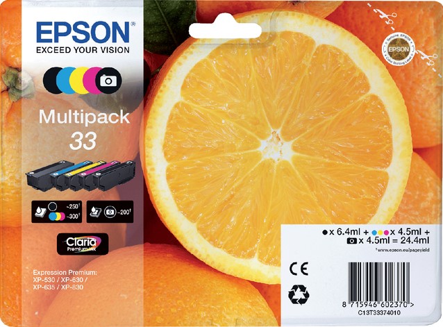 Inktcartridge Epson 33 T3337 2x zwart + 3 kleuren