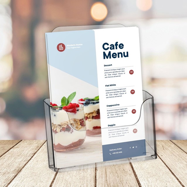 • Folderbakje voor een glasheldere presentatie van folders, catalogi en prijskaarten.