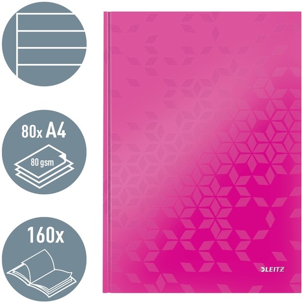Notitieboek Leitz WOW A4 160 pagina's 90gr lijn roze